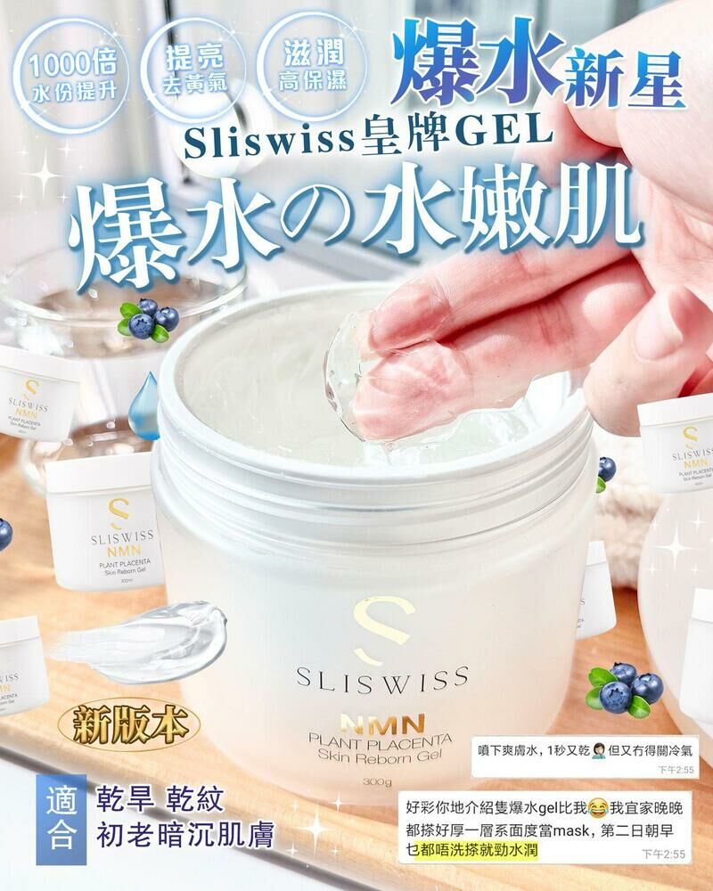 全新升級版Sliswiss白藜蘆醇超級爆水Gel震撼登場!這款皇牌產品不僅擁有超強補水效果,