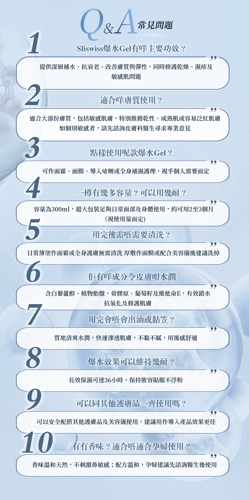 **立即體驗Sliswiss極光白藜蘆醇新版爆水Gel,讓肌膚重現水潤彈性,煥發健康光澤!**